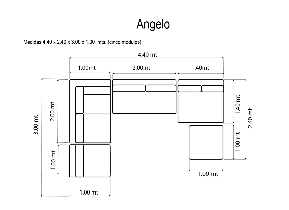 El módulo del chaise longue mide 1.40 x 1.40 mts. y podés colocarlo en cualquier parte del sillón. Este sillón es 100% modular y funcional.